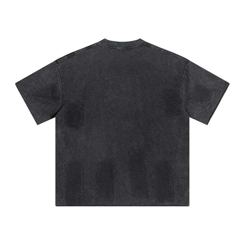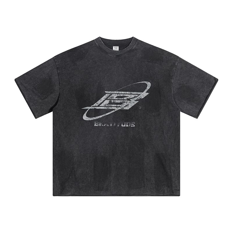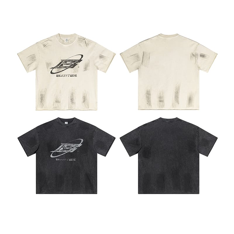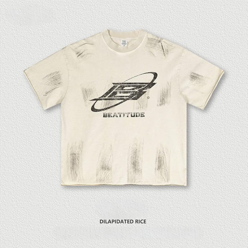 Style:Retro mottled mottled letter B multi-process superimposed distressed high street round neck streetwear T-shirt;